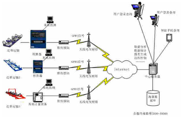 通過(guò)安裝在稱(chēng)重設(shè)備上的傳輸模塊將稱(chēng)重?cái)?shù)據(jù)傳送到中央服務(wù)器。由中央服務(wù)器完成稱(chēng)重?cái)?shù)據(jù)處理、運(yùn)算,可負(fù)載5000-10000部傳輸模塊同時(shí)工作。用戶可通過(guò)B/S構(gòu)架的網(wǎng)頁(yè)、手機(jī)等作為數(shù)據(jù)監(jiān)控終端對(duì)數(shù)據(jù)服務(wù)器進(jìn)行實(shí)時(shí)的訪問(wèn)、歷史查詢,計(jì)量統(tǒng)計(jì)實(shí)現(xiàn)了對(duì)計(jì)量數(shù)據(jù)的實(shí)時(shí)監(jiān)控。